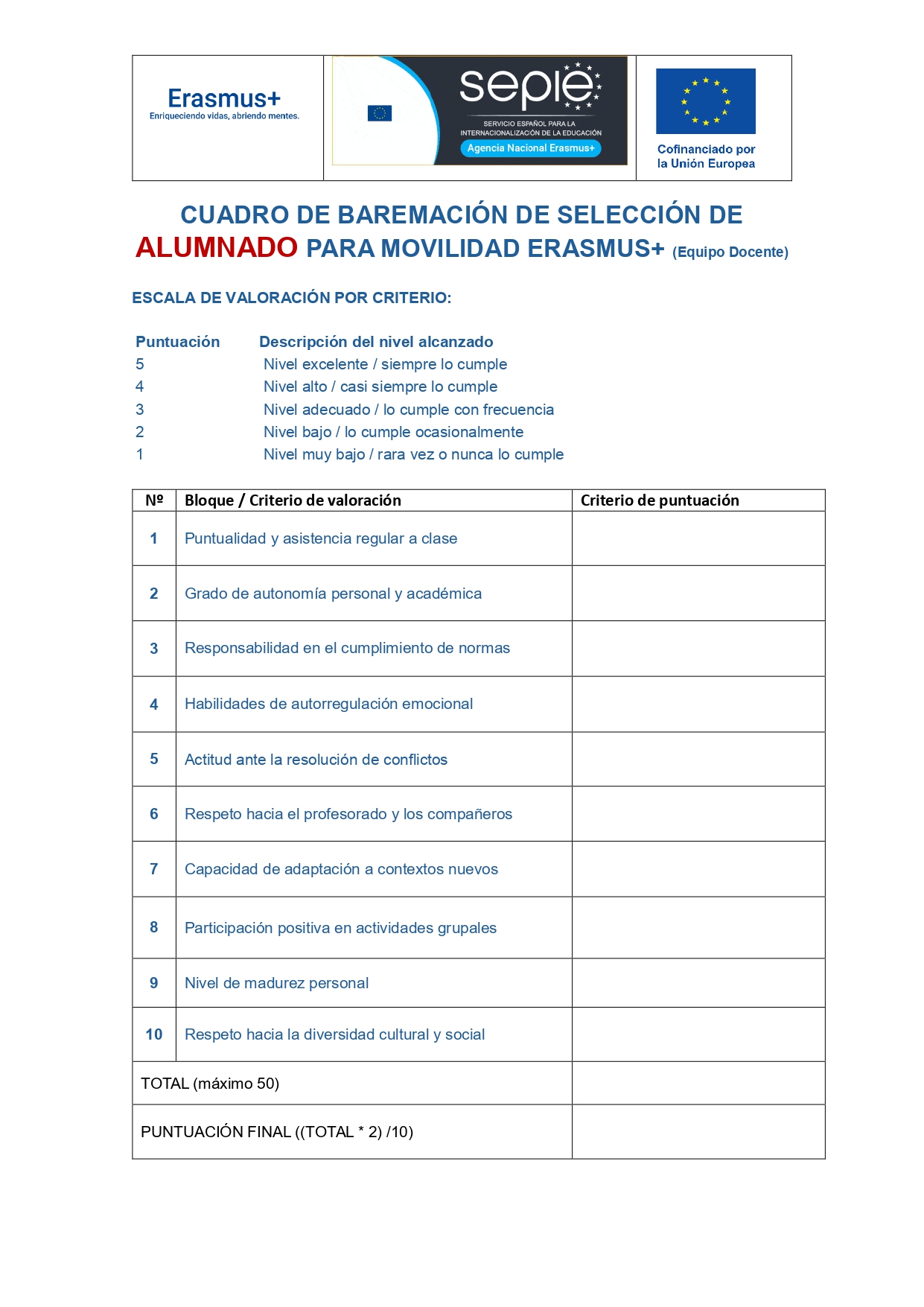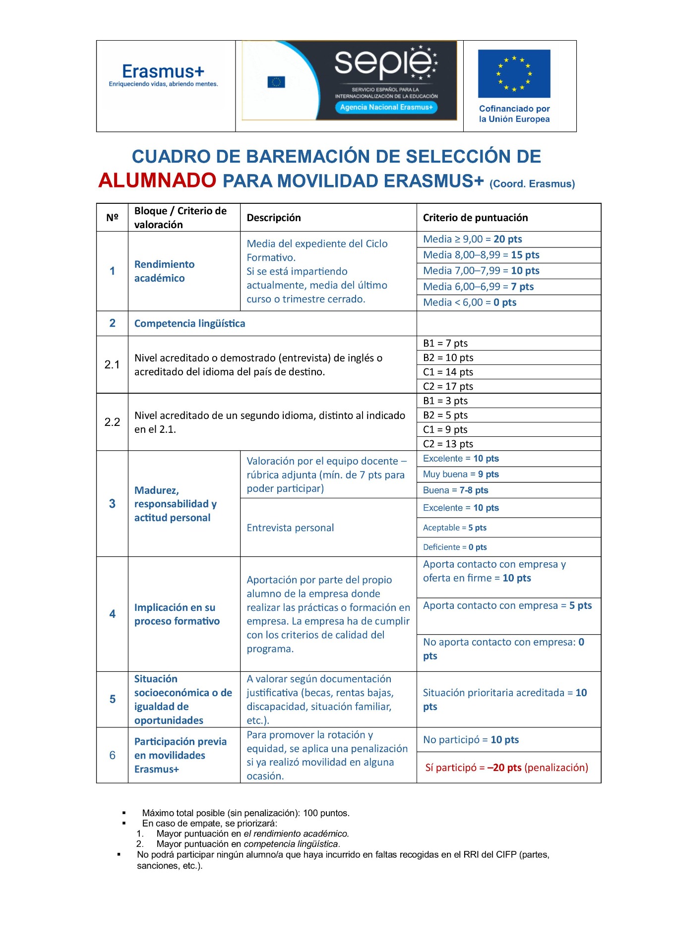 Criterios de selección alumnado
